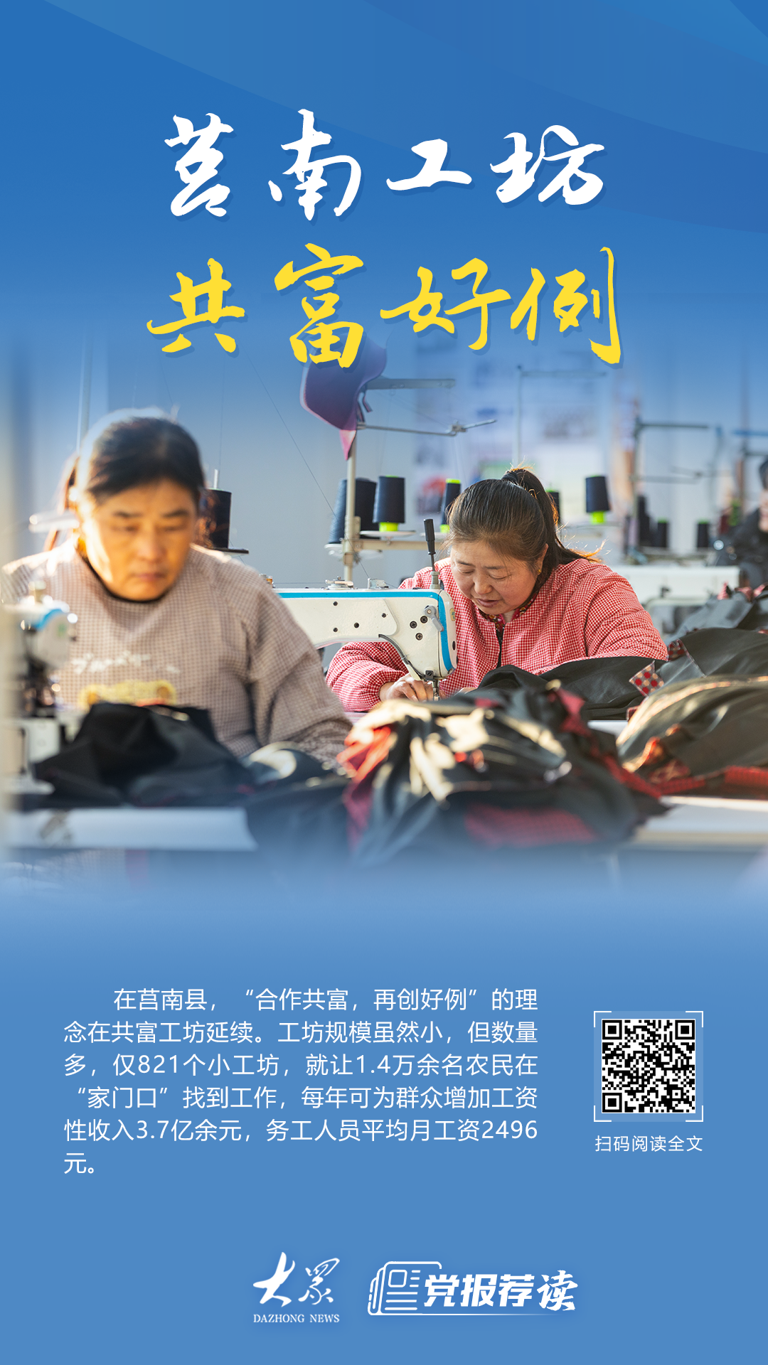 均安工作坊是共享财富的一个很好的例子。 90%的行政村建成小作坊821个,1.4万多名农民在家门口找到了工作。 “砰、砰、砰!” 12月8日下午,阳光照耀着莒南县盐滨镇略庄村的一个小农场。村民葛秀娜拍拍被太阳晒过的被子,然后把柔软的被子抱回家。 “哒哒哒!”三分钟后,要求留下去收被子的葛秀娜已经坐在城西服装加工功夫车间的缝纫机前。针线飞快地起落,他飞快地缝制了一个夹克口袋。在家的这份工作,让葛秀娜有时间照顾家人,也给了她“保住工作”的信心。楼上是服装厂,楼下是村委会;楼上是服装厂,楼下是村委会;左边是私人住宅,右边是玩具加工厂。今年以来,居宁县开展了“五小快富”活动。小作坊、小市场、小商店、小作品、小展览等形式的共富作坊“镶嵌”在街头巷尾。历史上,王家房前村农业生产合作社以“组织、合作、共同发展”的理念,解决了合作社资金不足的问题;高家流沟村团支部成立了就业登记班,解决青少年因经济发展需要迫切需要识字的问题;我的李家寨农业经营开始通过深耕土地、平整田地等小事改造山河,争取丰收,创造了“愚公移山、改变中国”的“好榜样”。如今,“携手共进、再创典范”的理念仍在延续在共同财富工厂。作坊规模虽小,但数量不少。只有821个小作坊,却让1.4万多名农民“在家门口”找到了工作。每年可为群众增加工资性收入3.7亿元以上,农民工月平均工资2496元。上午11:00左右,胡宁县大店镇超越粤帽制作车间的工人大部分都回家了,只有少数工人在自己的工位上忙碌着。 “车间修复了车峪村一栋2500平方米的闲置厂房,也解决了方圆5公里内70名工人的就业问题。现在工厂每天可以生产1万顶棒球帽,产品全部出口。”该负责人邱成林表示,由于很多“好手”都在考虑带孩子去城里读书,为了留住工人,邱成林决定在城里再开一家工厂。nty。工厂之所以主动跟随工人,是因为邱成林尝到了联富工场的好处。 “租金低,人工成本低,订单源源不断,不愁销量。”邱成林说。工作坊将寂静的房屋、老年劳动力和城市秩序三个要素联系起来。村集体提供场地,组织劳动力,筹集部分资金。企业提供技术、订单和销售渠道,农民获得工资收入。团林镇南塘家楼村村民张红也尝到了“织笼共享致富作坊”的好处,张红有一身手艺,会织线、织渔网。 “农忙时我拿原料,农闲时我去车间赶工作。”进来就干活,家里有事就早走。房前镇“疏干巷与十八里”对接提升区,岔河村旧配电房改造成当地特色产业雕刻作坊直播间;文团镇众信爱业共荣工场有长远规划,从作坊到小微企业,之后将逐步发展成为规范经营,为工厂提供更多发展样本,促进共荣;团林镇利用离岸港口优势,提供渔网、渔网等配套设施,支撑村里的产品外包加工……在发展共同富裕的过程中,沿着由近到远的县路,项目可大可小,销售可上可下,劳动力可进可出,重点发展“五小”收入来源,促进群众收入快速增长。在胡宁。今年以来,当地通过政府主导项目新建小作坊345个,占现有总数的42%。行政村小作坊覆盖率达到93.2%;有市场166个,每年可增加群众收入2.7亿元; 37 该电子商务集群或示范点共有员工542人,平均月工资4365元,年销售收入1.2亿元。今年共公布网上就业岗位42批,新增就业岗位6594个,转移失业人员2194人。 。